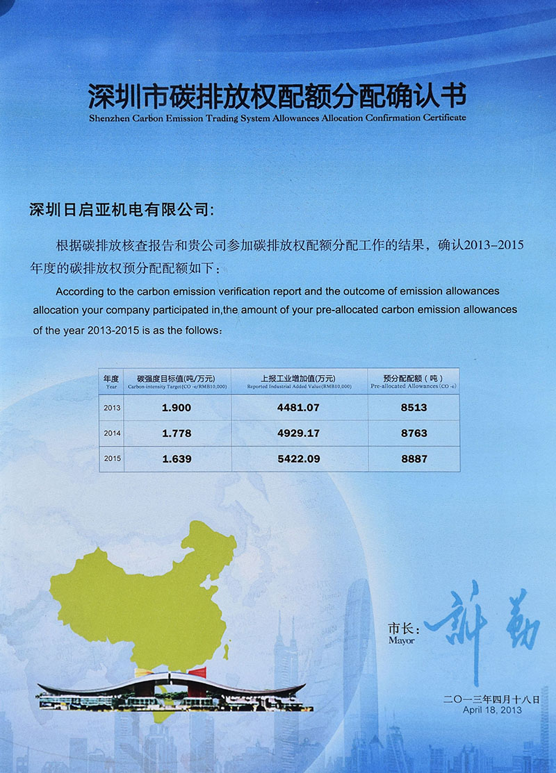 深圳市碳排放确认书
