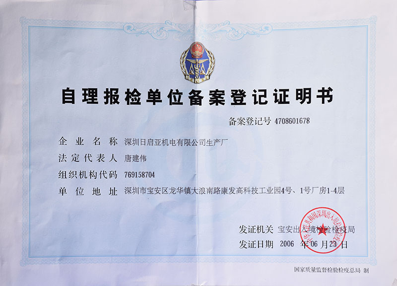 自理报检单位备案登记证明
